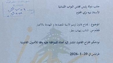 قدّم النائب إيهاب مطر إلى رئاسة مجلس النواب اقتراحَ قانونٍ يهدف إلى ترميم الأبنية المتصدّعة والمهدَّدة بالانهيار،” في خطوةٍ تشريعية…