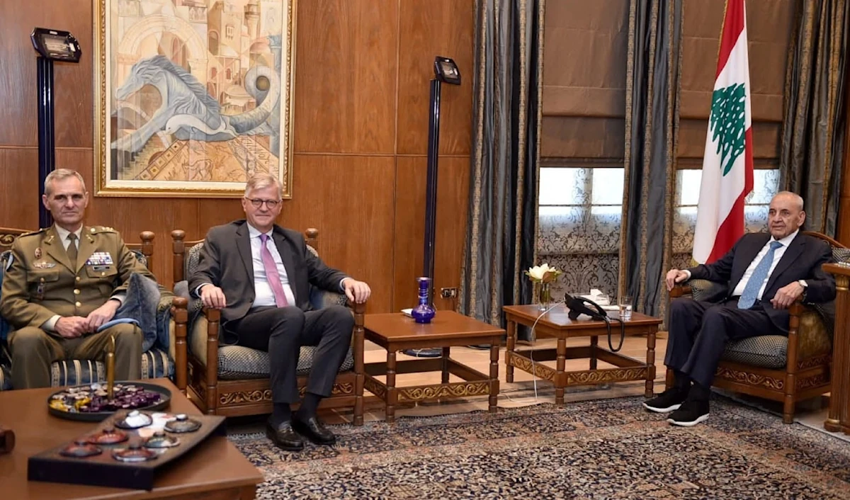 وخلال لقائه، في عين التينة، اليوم، وكيل الأمين العام لـ«الأمم المتحدة» لعمليات السلام جان بيير لاكروا، في حضور قائد «اليونيفيل»، آرولدو لاثارو، توجه بري بالشكر والتقدير إلى لاثارو على «الجهود التي بذلها طيلة توليه مهامه كقائد لقوات الطوارئ الدولية لتنفيذ القرار الأممي 1701، وتعزيز أواصر التعاون والصداقة بين جنود اليونيفيل وأبناء الجنوب»، متمنياً له التوفيق والنجاح في مهامه الجديدة.